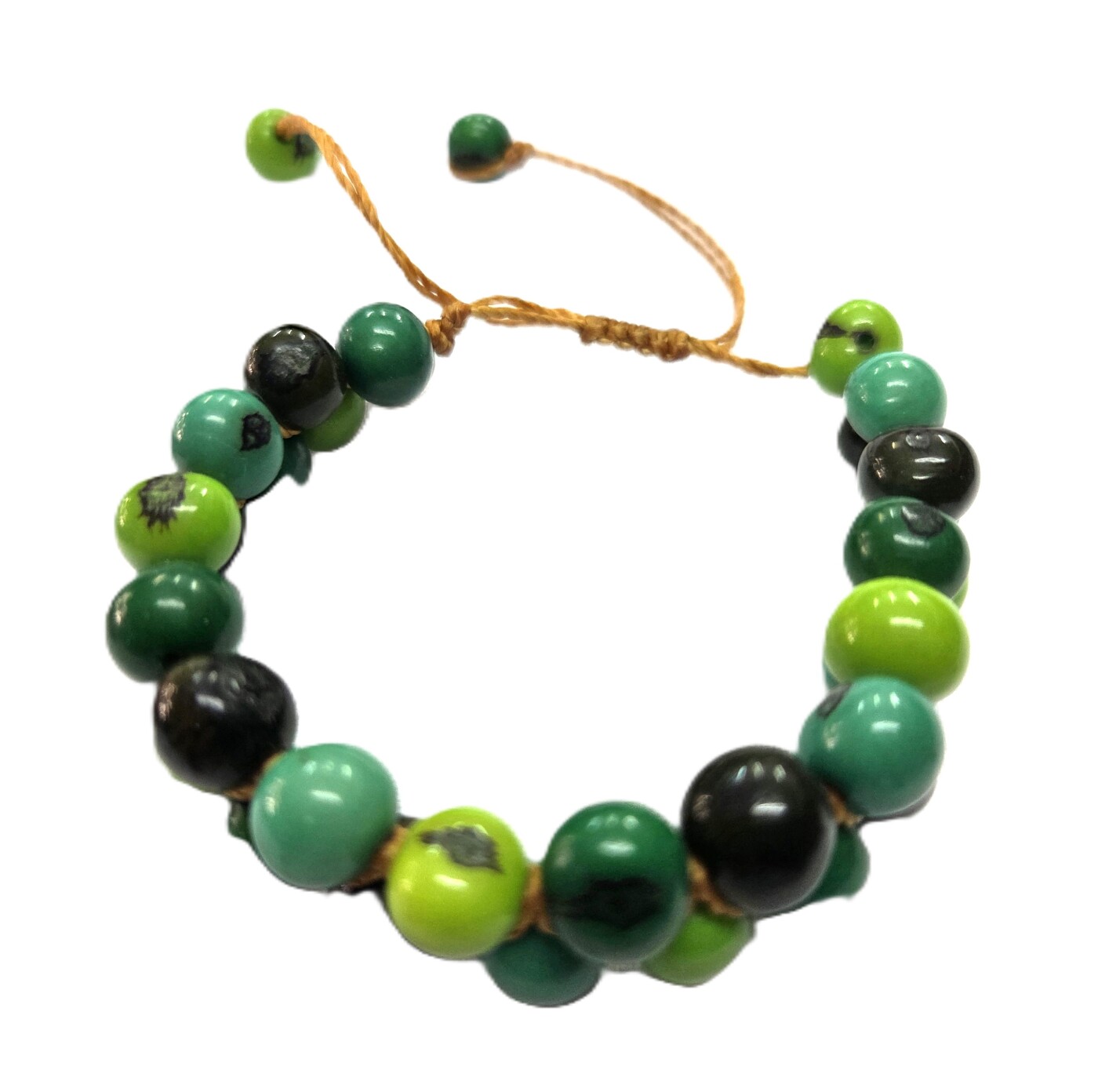 Amazon Green Blend Adjustable features a mix of green acai tones arranged in a flexible design with an adjustable cord for a comfortable fit. Handmade in Ecuador, this bracelet offers a natural and versatile accessory ideal for everyday wear and eco-conscious collections.