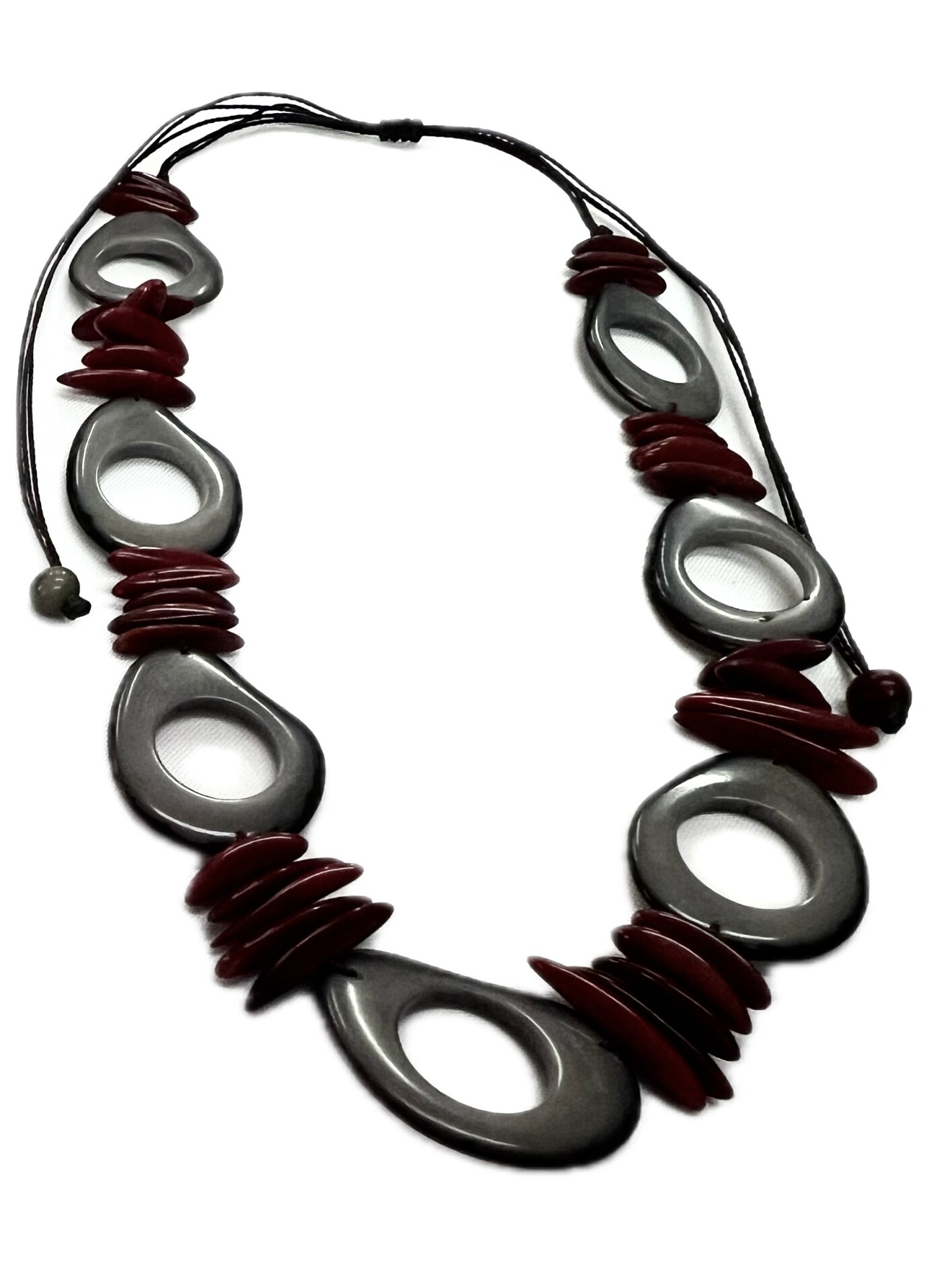 Orchid Ember delivers bold elegance through polished Tagua forms shaped by hand in Ecuador. Lightweight yet impactful, this adjustable eco-friendly necklace supports ethical sourcing while offering flexibility for both small and large wholesale orders.