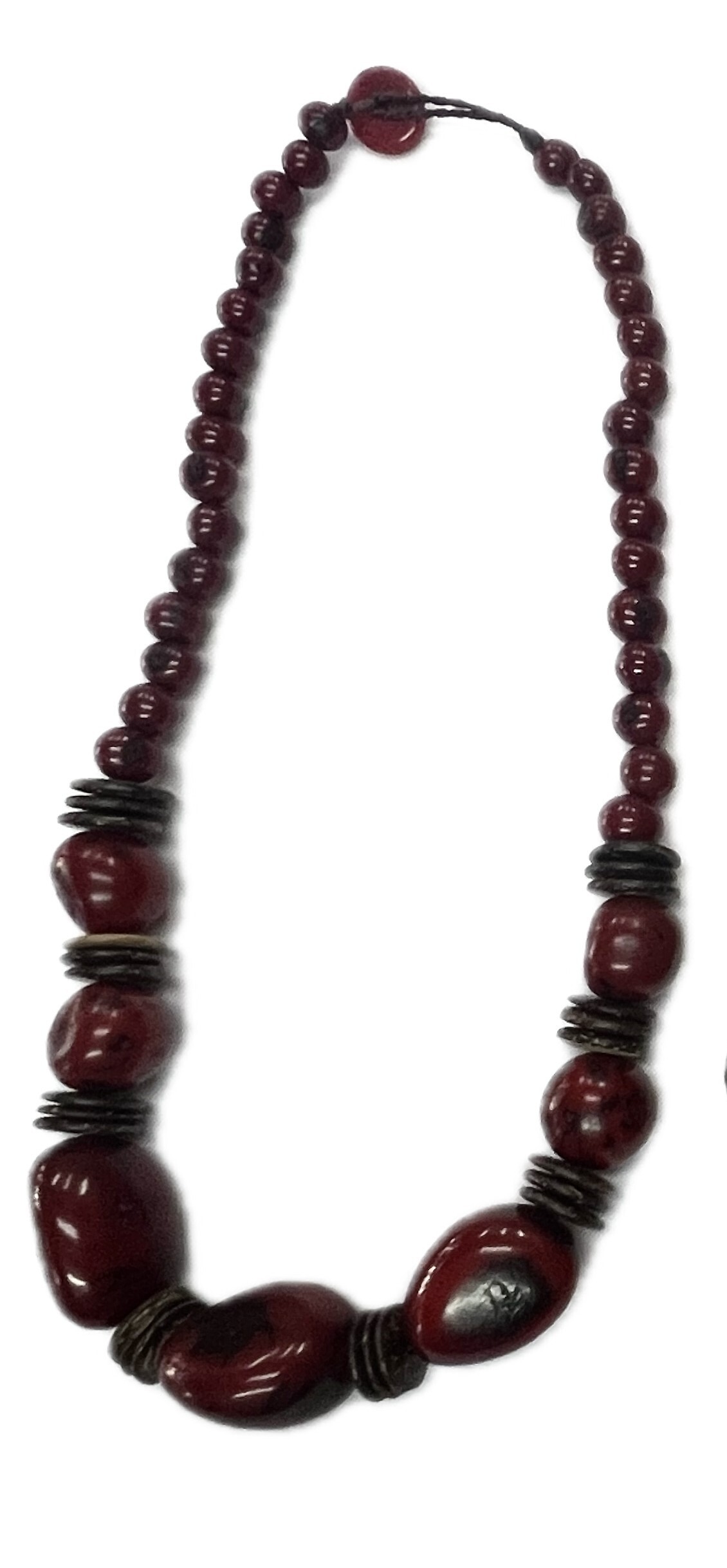 Moonlit Canela radiates warmth and sophistication, blending polished Tagua pieces into a design that feels both bold and graceful. Handcrafted in Ecuador with sustainable sourcing, this adjustable necklace enhances modern fashion collections and supports wholesale Tagua jewelry programs seeking elegant, responsibly made accessories.