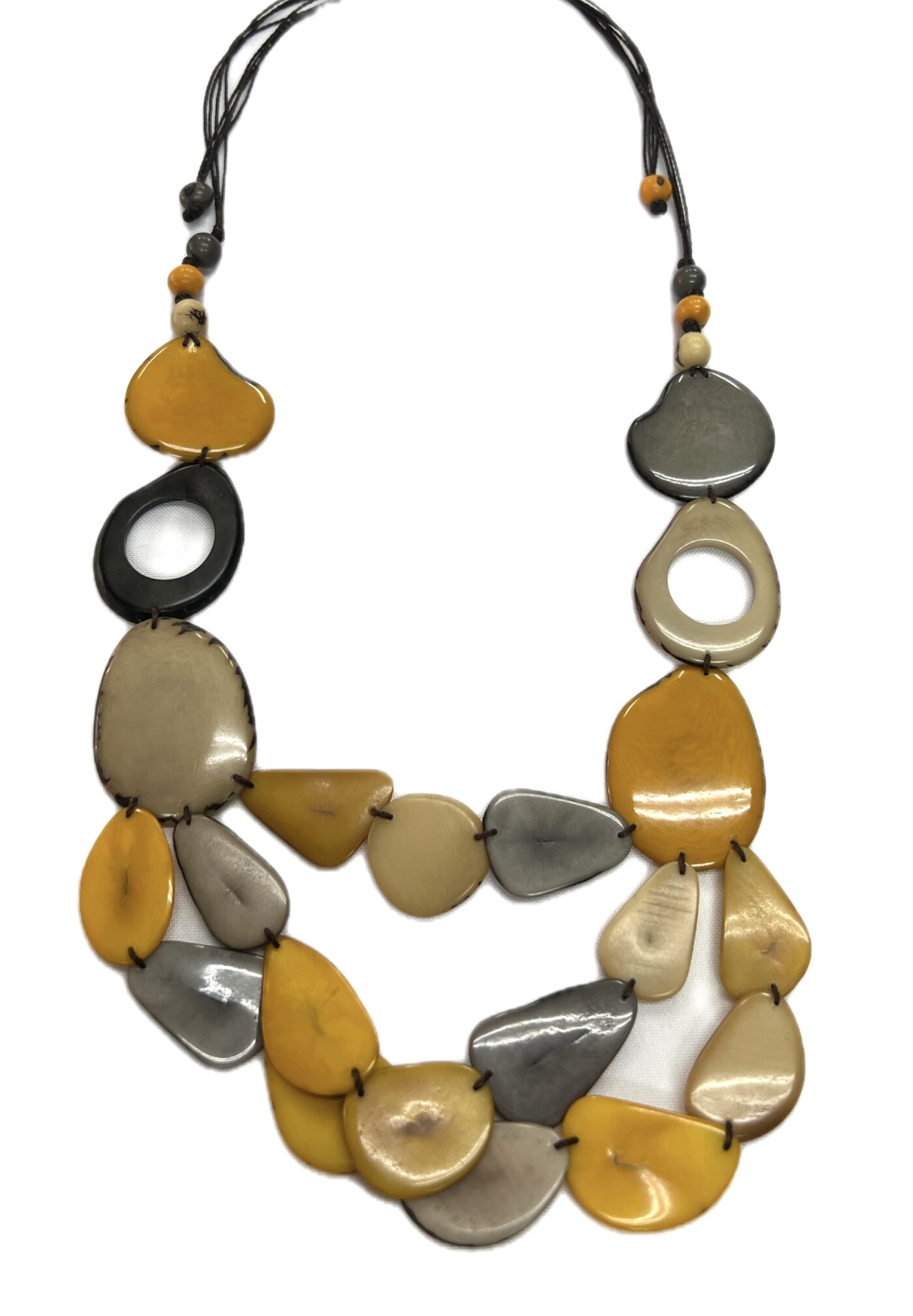 Golden Orchid celebrates botanical elegance through polished Tagua components shaped by hand and arranged for graceful impact. Adjustable and responsibly produced, this vegetable ivory necklace enhances eco-friendly fashion collections and offers scalable ordering for wholesale buyers worldwide.