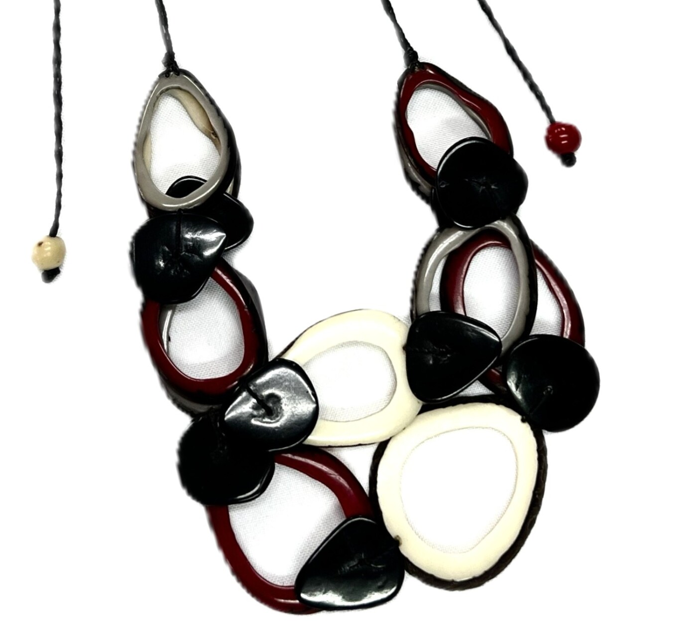 Ivory Laurel combines luminous natural Tagua with elegant design, forming a necklace that feels refined without losing its organic character. Crafted ethically and finished with an adjustable wax cord, this sustainable jewelry piece appeals to boutiques and wholesale buyers alike.