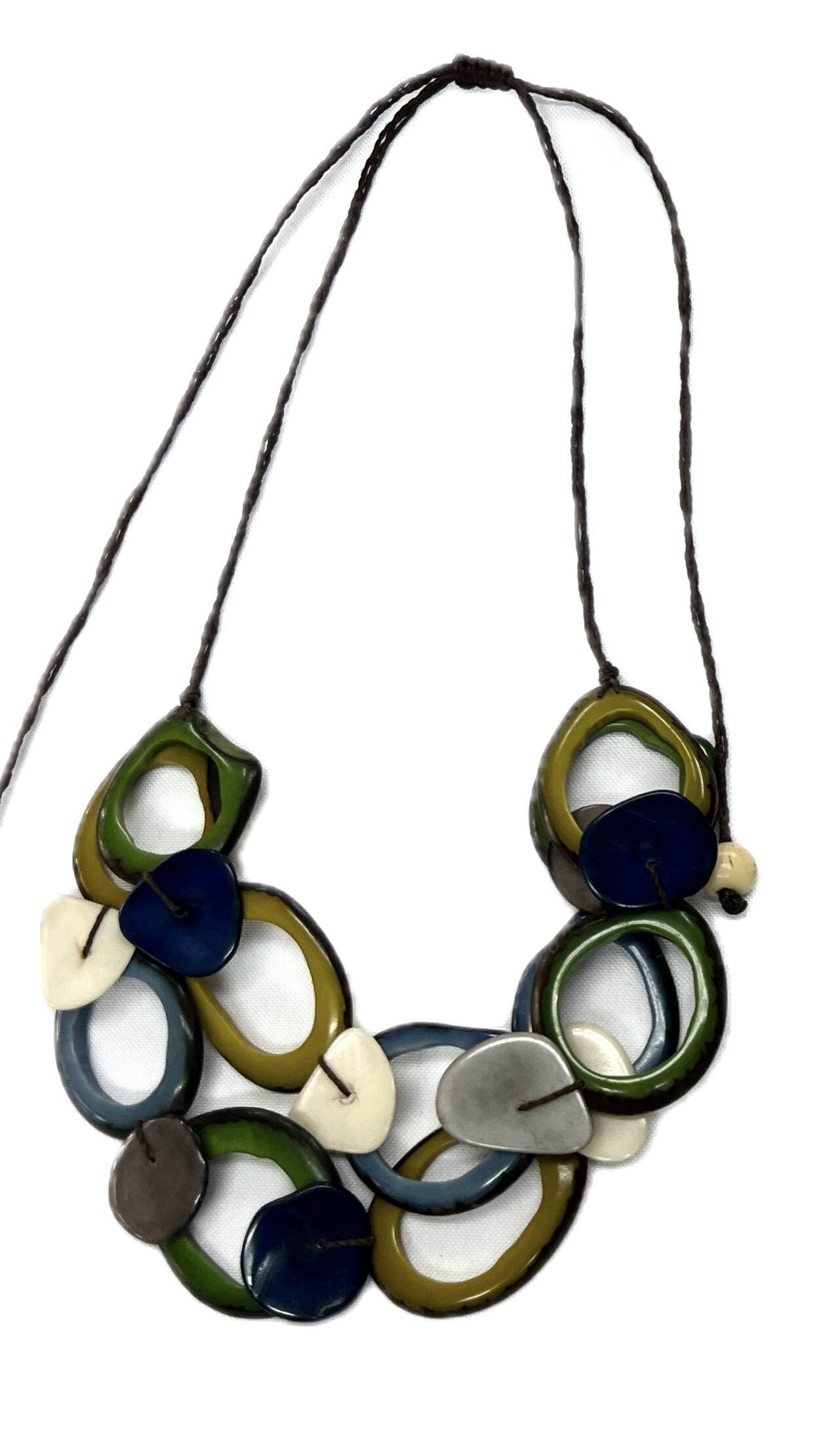 Andes Glow reflects subtle brilliance through smooth Tagua beads arranged in a refined statement design. Crafted sustainably and ethically sourced, this adjustable necklace blends natural beauty with modern styling, making it suitable for boutiques and bulk wholesale Tagua jewelry programs.