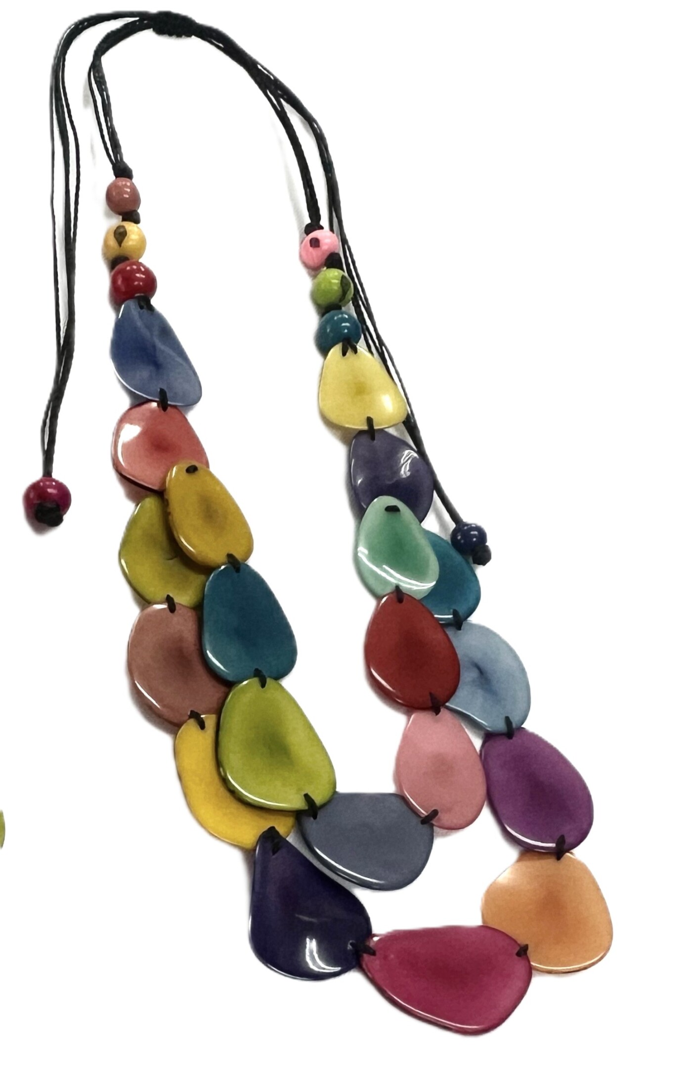 Golden Horizon Bloom reflects expansive natural beauty through smooth Tagua pieces formed into an elegant composition. Crafted sustainably in Ecuador and finished with an adjustable wax cord, this vegetable ivory necklace strengthens eco-conscious jewelry selections for boutiques and wholesale markets.