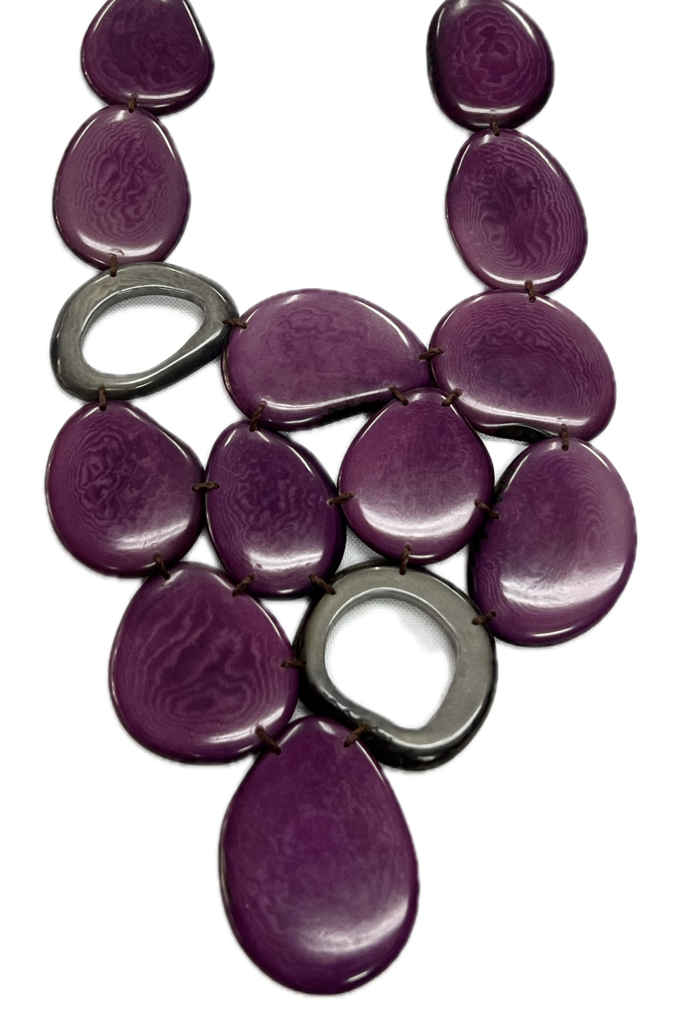 Luna Ivory Cascade flows gently across the neckline with layered Tagua components shaped by hand. Responsibly produced and offered in multiple color options, this sustainable necklace supports both independent retailers and high-volume wholesale Tagua jewelry programs.